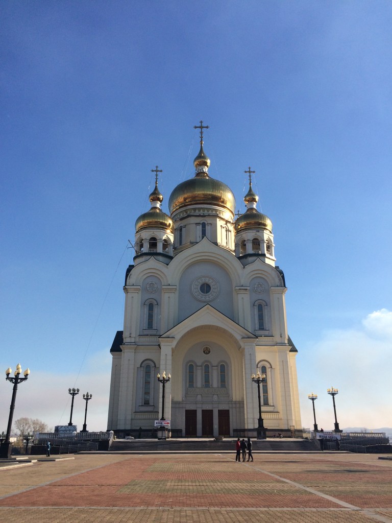 Khabarovsk isn’t a typical spot for Trans Siberian travellers to stop at, as most people will travel directly between Ulan Ude and Vladivostok. It is the coldest city in the world with a population of more than 500,000, and let me tell you, it was teeth-chatteringly freezing!!! The skies were bright blue and there wasn’t any snow, but the real feel temperature was about -12 degrees Celsius . As usual we arrived early in the morning and popped to a great cafe that served eggs and bacon. The girl serving us even wrote her questions down so that we could ‘Google translate’ them on our phones. Although we’re getting the hang of recognising written words and phrases, the spoken word is still so hard to pick up!