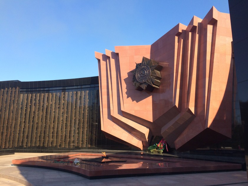 Having completed the usual ritual of finding the hostel, dropping bags, showering and then layering back up to start exploring, we made our way to the waterside. The Amur river, which attracts many tourists in summer with river cruises looked rather cold and uninviting! It is the world’s 10th longest river and forms part of the border between Russia and China. The riverside is being regenerated and the path brings you from the “Square of Fame” to the Khabarovsk Regional Museum. The square houses the Transfiguration Cathedral and the war memorial with a beautiful eternal flame. I didn’t realise quite how many Russian lives were lost in World War 2, but our guide in Moscow told us that approximately 26 million people died, military and civilian. This huge memorial had lists of thousands of names from the region and is a nice tranquil place for reflection.