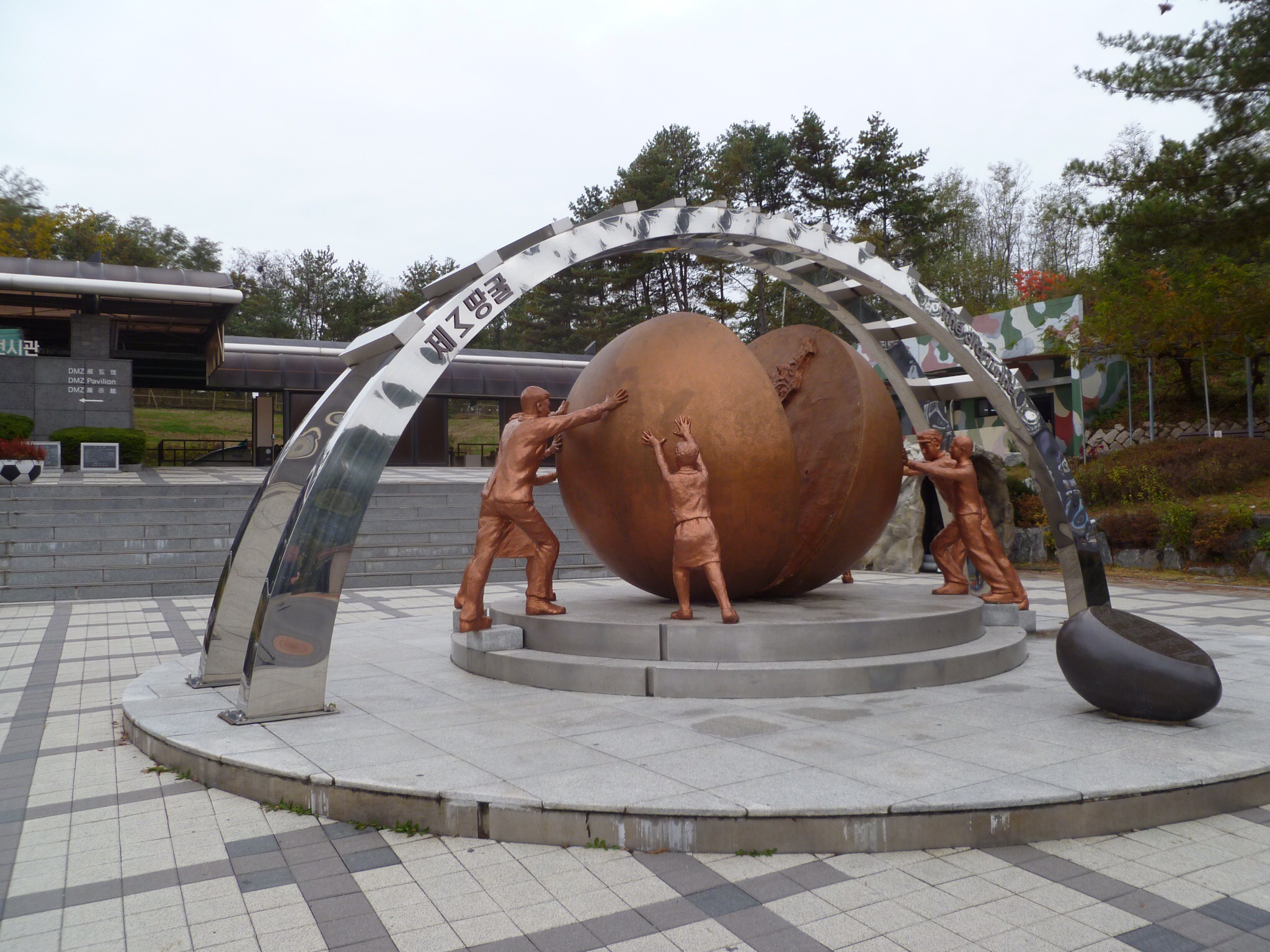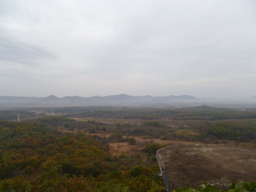 Coffee consumed, we boarded the coach for the hour long journey to the DMZ. Dana provided us with some Korean history, and explained the itinerary for the day. Upon arrival at the DMZ, Dana took the sign-in sheet to a military official, as the nationality of all visitors needs to be checked before entrance is permitted. Formalities complete, we made our way to Dora Observatory. As the propaganda of both North and South played out across the DMZ, a South Korean soldier described what we could see in front of us as we looked towards North Korea. The village of Kijong-dong was definitely the most intriguing. Having heard many times on TV about the luxurious buildings that, upon closer scrutiny, have no inhabitants, windows or lifts, it felt surreal to stare at them through binoculars.