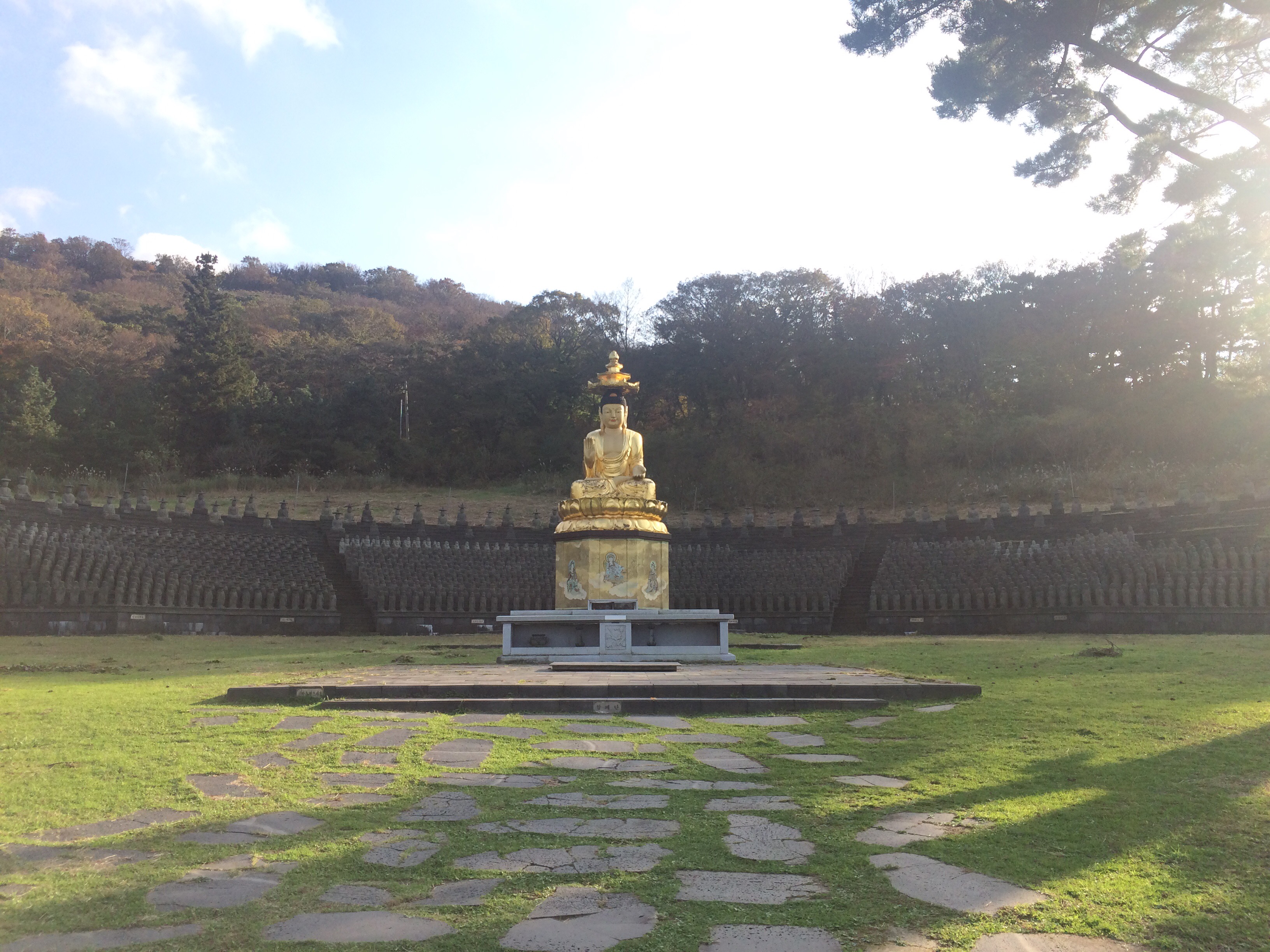 Once we reached the bottom, some hours later, we had to walk towards Jeju city, a few kilometres away, to catch a bus back to Seogwipo. We decided to stop at the Gwaneumsa temple, home to two beautiful Buddha statues, one stone and one golden.