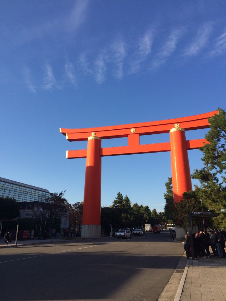 As we made our way to Shinto Heian shrine, as recommended by staff in the hostel, we didn’t expect to see the enormous tori (gate) that greeted us as we turned into the street. Sometimes a picture really doesn’t do a big gate justice!!