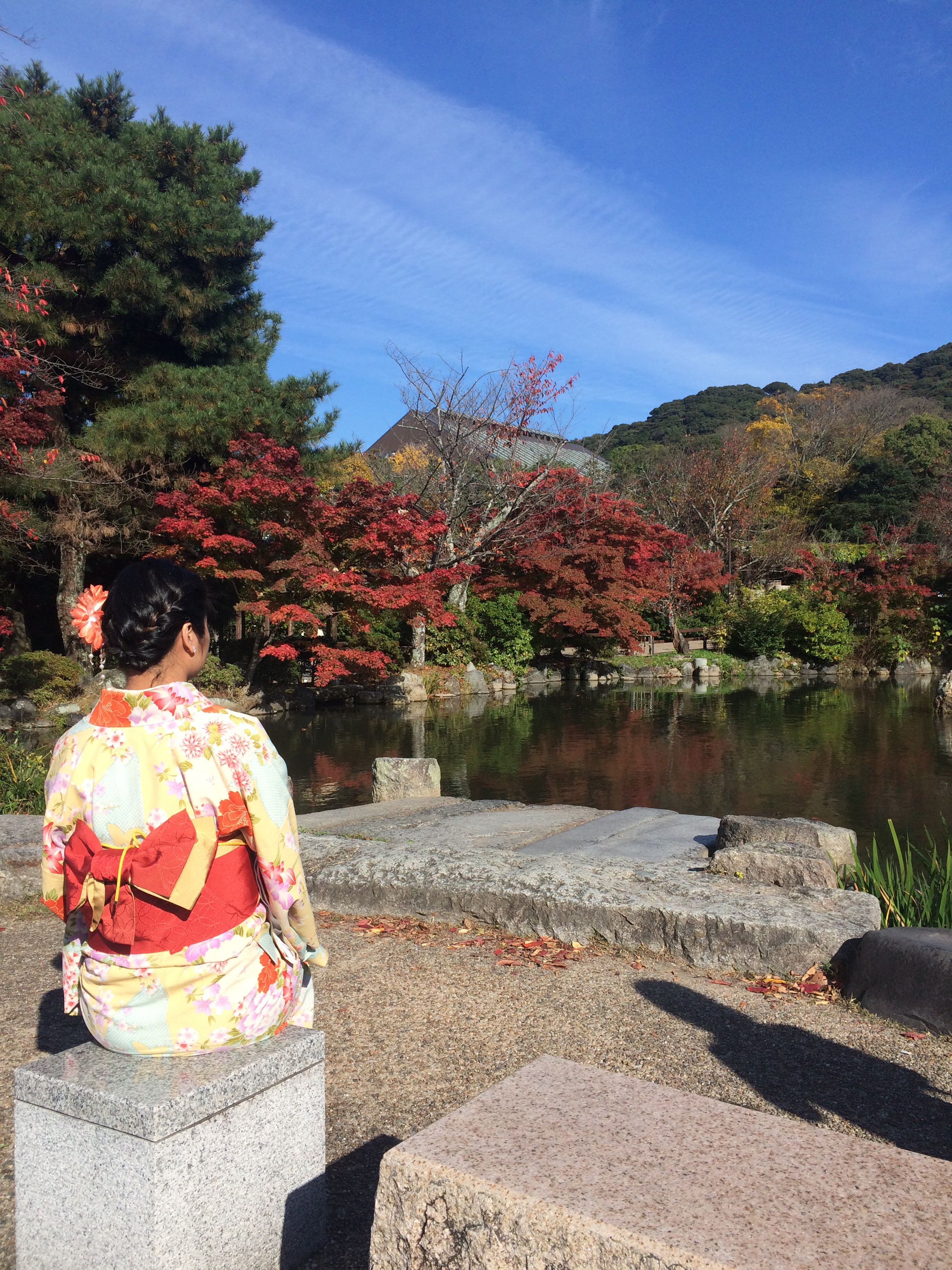The first temple we went to was Kiyamizu temple and Jishu Shrine. There were hundreds of people around and it felt far from the usual serenity that you feel when wandering around the temples with the scent of incense in the air. We didn’t spend too long before we walked to some of the other temples, almost all as busy as the first! I do think we were spoiled by our experience in the rest of Japan when we often had the main halls of temples to ourselves to sit and admire our surroundings on the tatami mats. Nevertheless, the temples in Kyoto and their grounds were spectacular. In particular, the autumn leaves at Eikando temple were breathtaking.