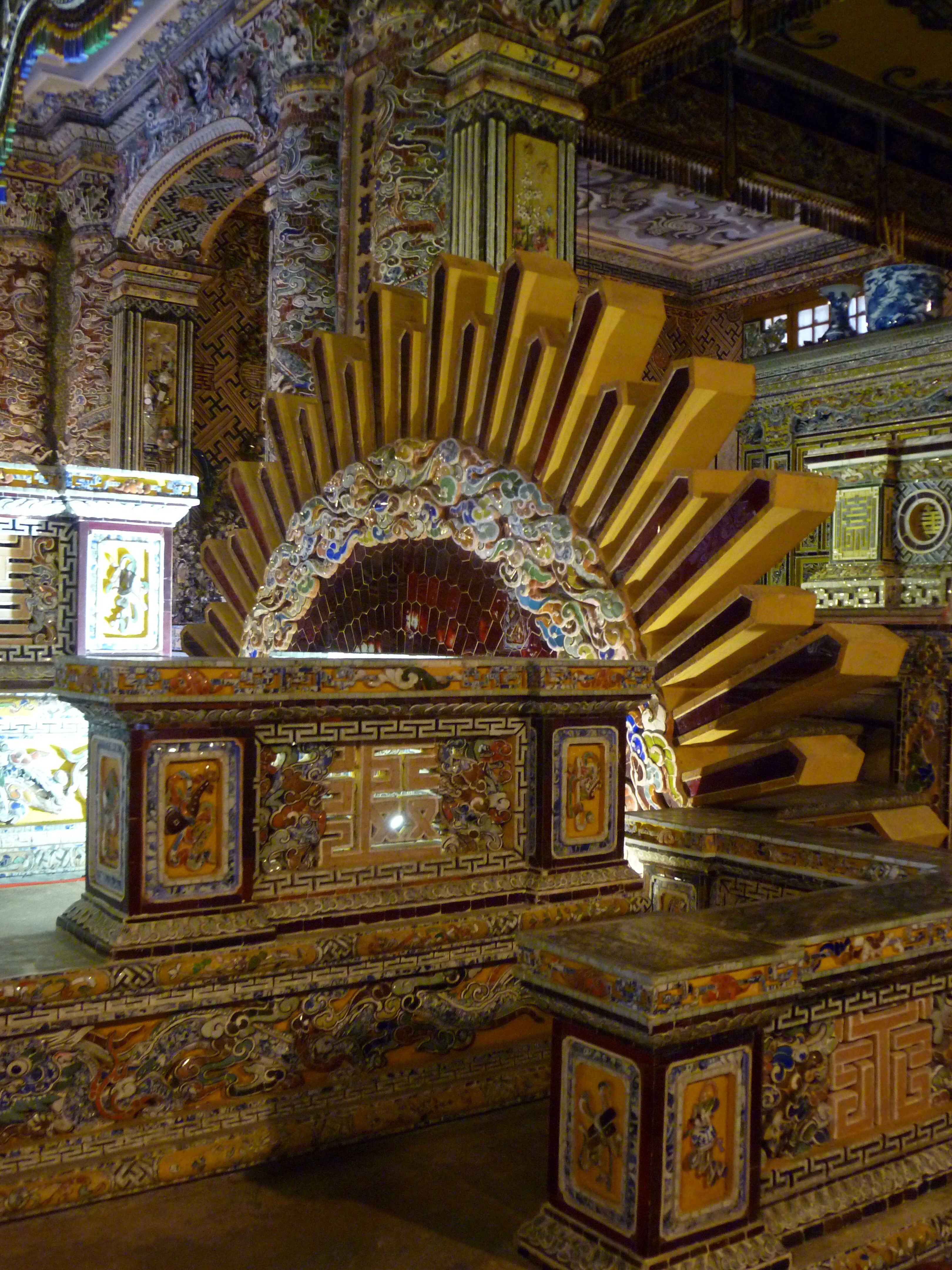 The tour started with trips to the tomb of Emperor Minh Mang’s tomb and Emperor Khai Dinh’s tomb. Both sites were fascinating , and the tour guide provided excellent explanations of the life of each emperor. Next up was a trip to a Kung Fu show, which was impressive, yet a little disturbing. A trip to a village where the local people made conical hats and incense sticks didn’t add much to the tour, but at least I now know how an incense stick is made. Our final stop before lunch was at Emperor Tu Duc’s tomb. Of all of the sites we visited, I found this one the most impressive. Emperor Tu Duc spent quite some time living at the site before his death, meaning that the site had to be large enough to house his family, servants and concubines.