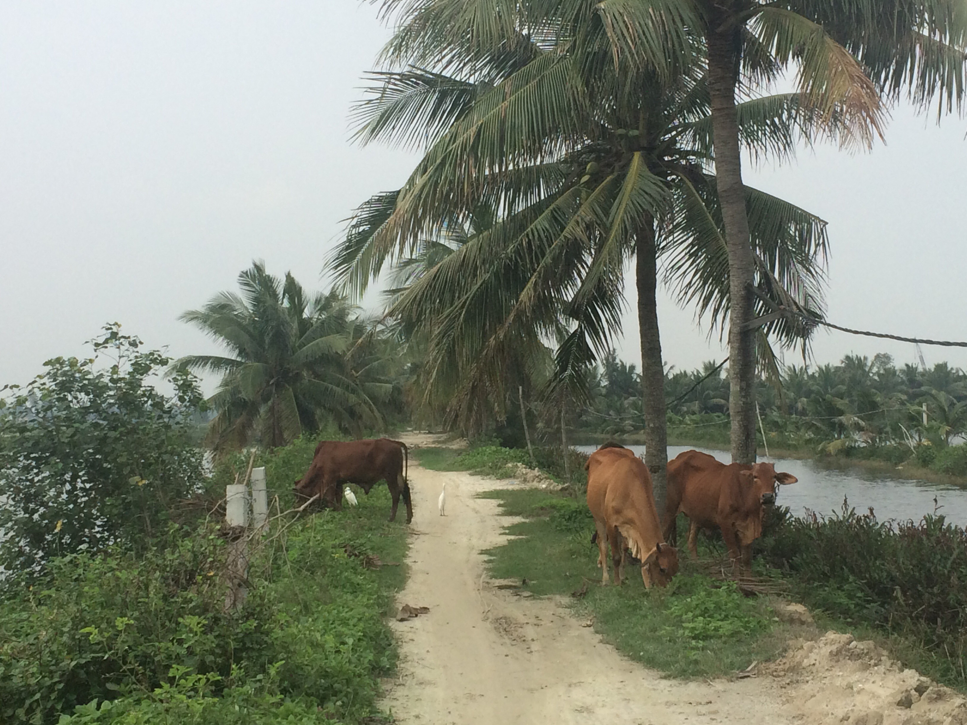 On Saturday morning, we went on a cycling trip run by a company called Path Bikers. We cycled around villages in the area, visiting a herb farm that was 400 years old, observing boat builders who were building a tourist boat, and stopping to take photos of water buffalo, cows, water palms and coconut trees. After a really enjoyable ride, we asked the guide’s recommendation for lunch in Danang. He didn’t just offer a suggestion, but took us to a restaurant and ordered for us. We had pork skewers (nem lui) and rice pancakes (banh xeo), served with peanut (and pig liver – thanks for the info, Fionnuala!) sauce. The food was amazing, and we would never have found the restaurant by ourselves.
