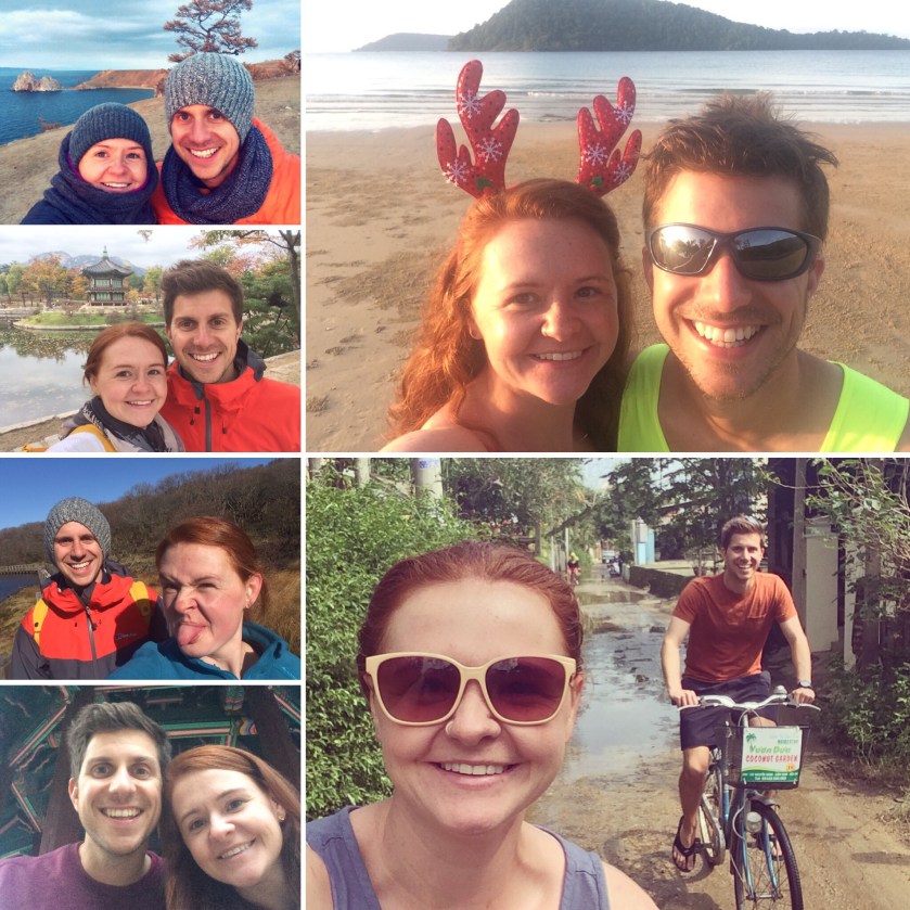 In total, we travelled approximately 20,370 miles (32,782 kms) in 141 days across 16 countries. We visited around 47 cities/towns/villages on our way and attempted to order food in multiple languages as we went (thank goodness for Google Translate). Our mode of transport was mainly train, with the occasional flight in the second half of the journey and a couple of ferries thrown in for good measure 🙂 I have over 4000 photos on my phone and goodness knows how many more on Graham’s camera! And rather importantly, we didn’t kill each other, and both realise that we are extraordinarily grumpy when tired, hungry and in need of a shower. Here is a little compilation of selfies, in case you forgot what we looked like!!
